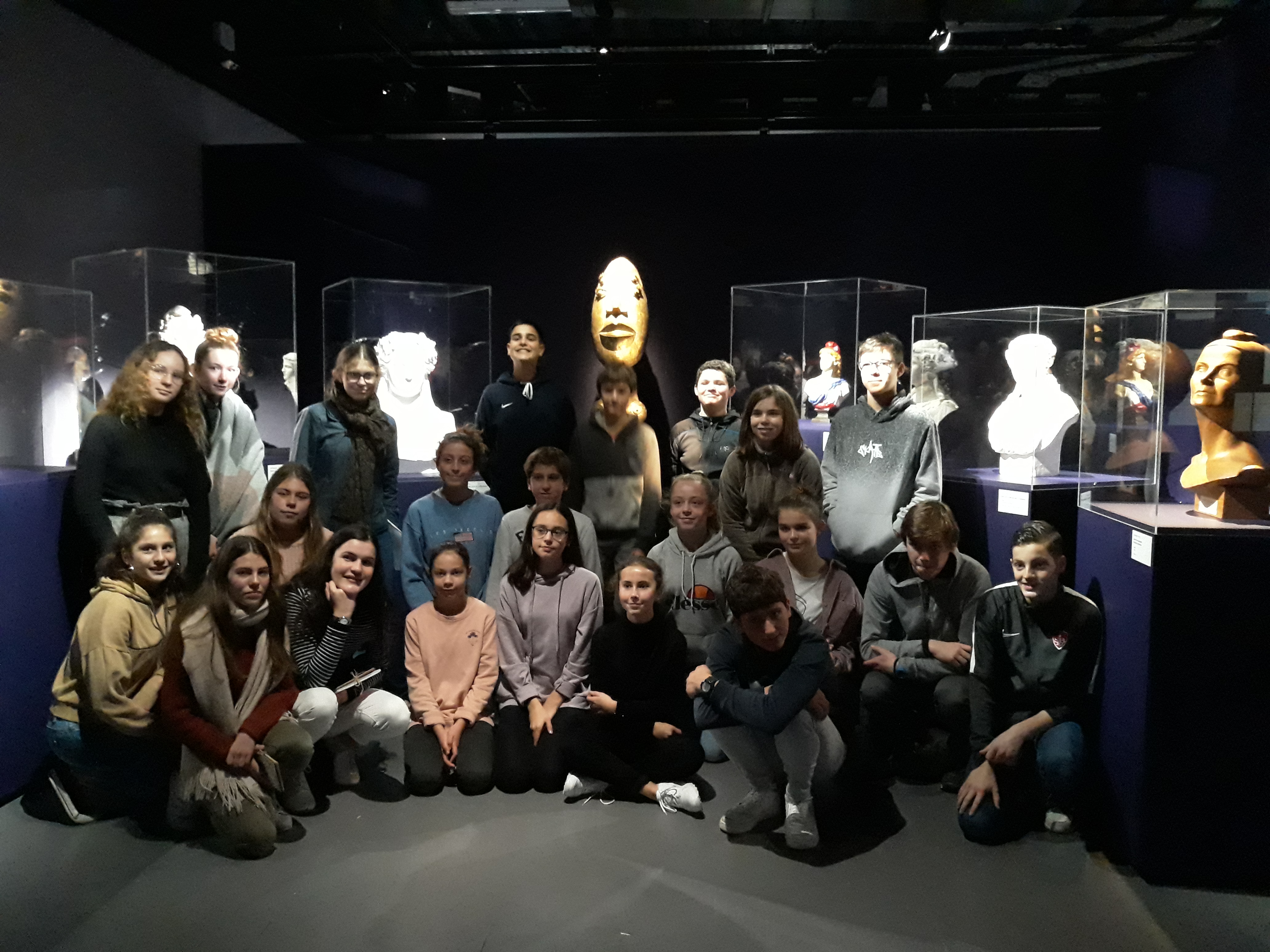 Les élèves de 3B devant les bustes |