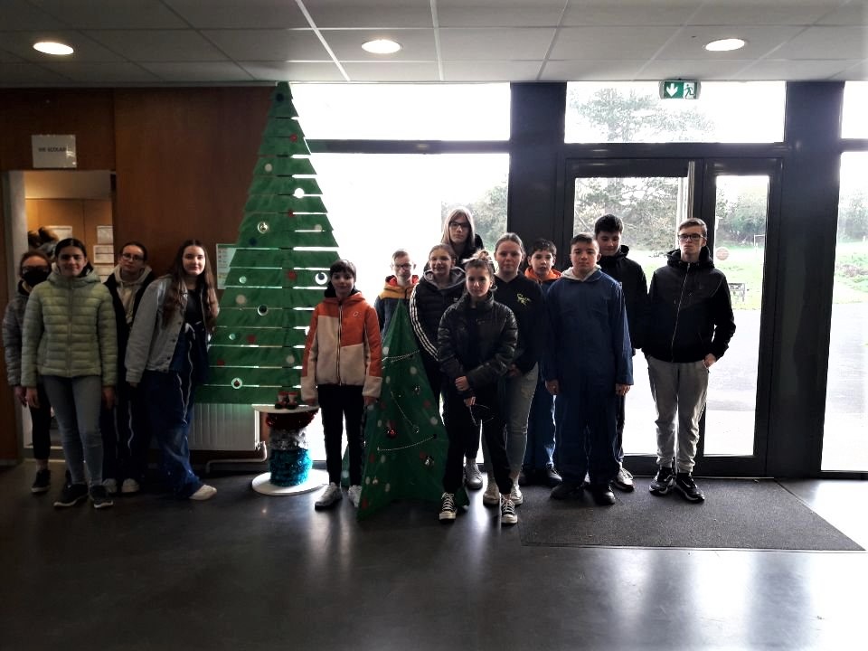 Les élèves 4e A devant le sapin |
