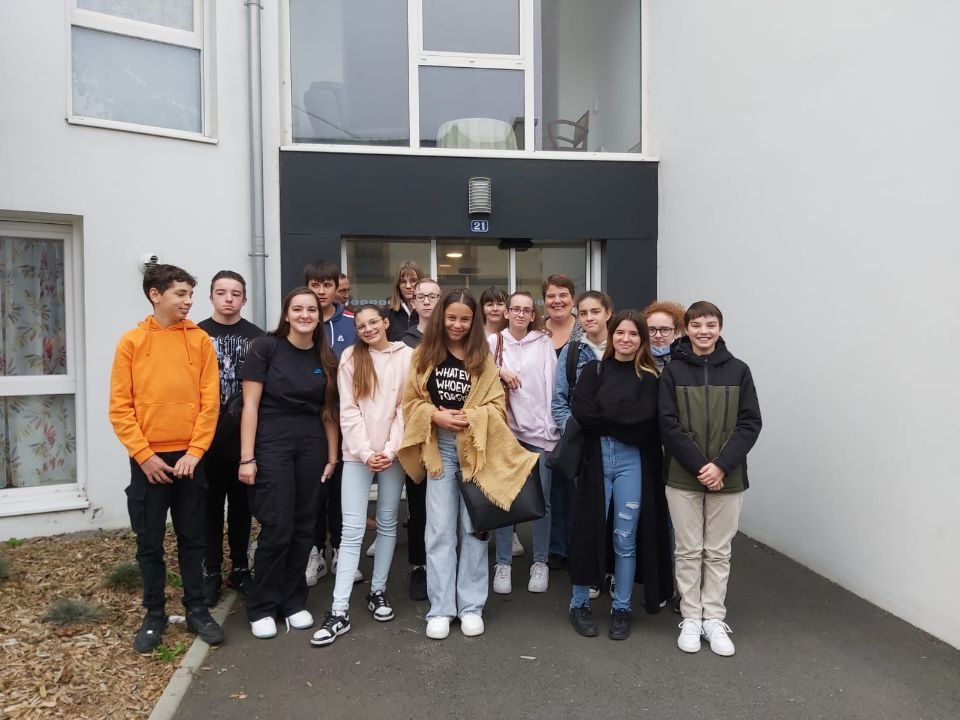 les élèves de 3e A devant la résidence Hénéour |