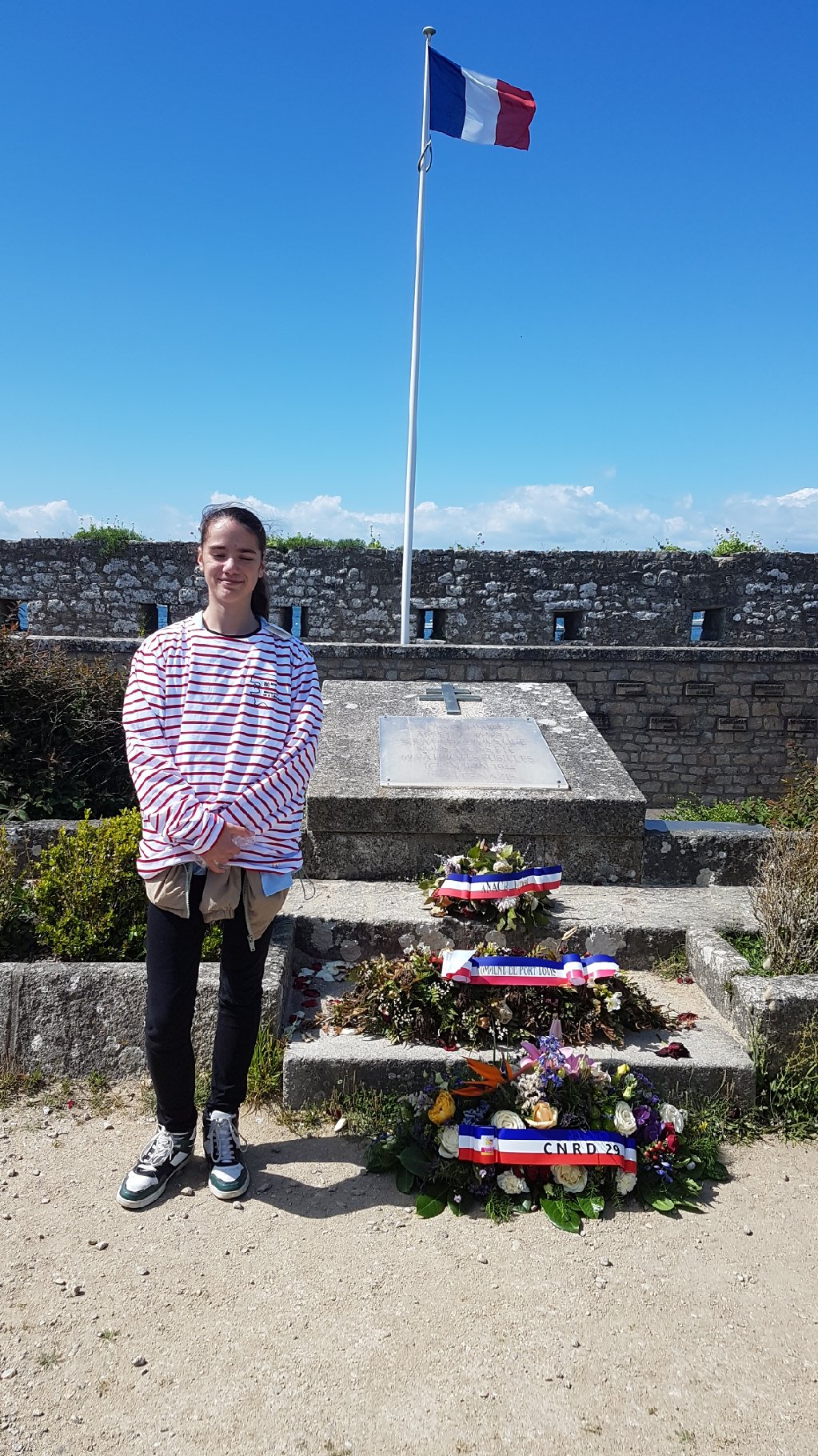 Lilou devant le mémorial des fusillés de Port-Louis |