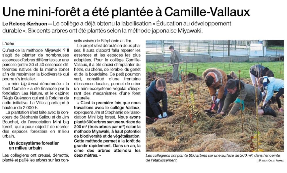 Une page du Télégramme consacrée à la mini-forêt