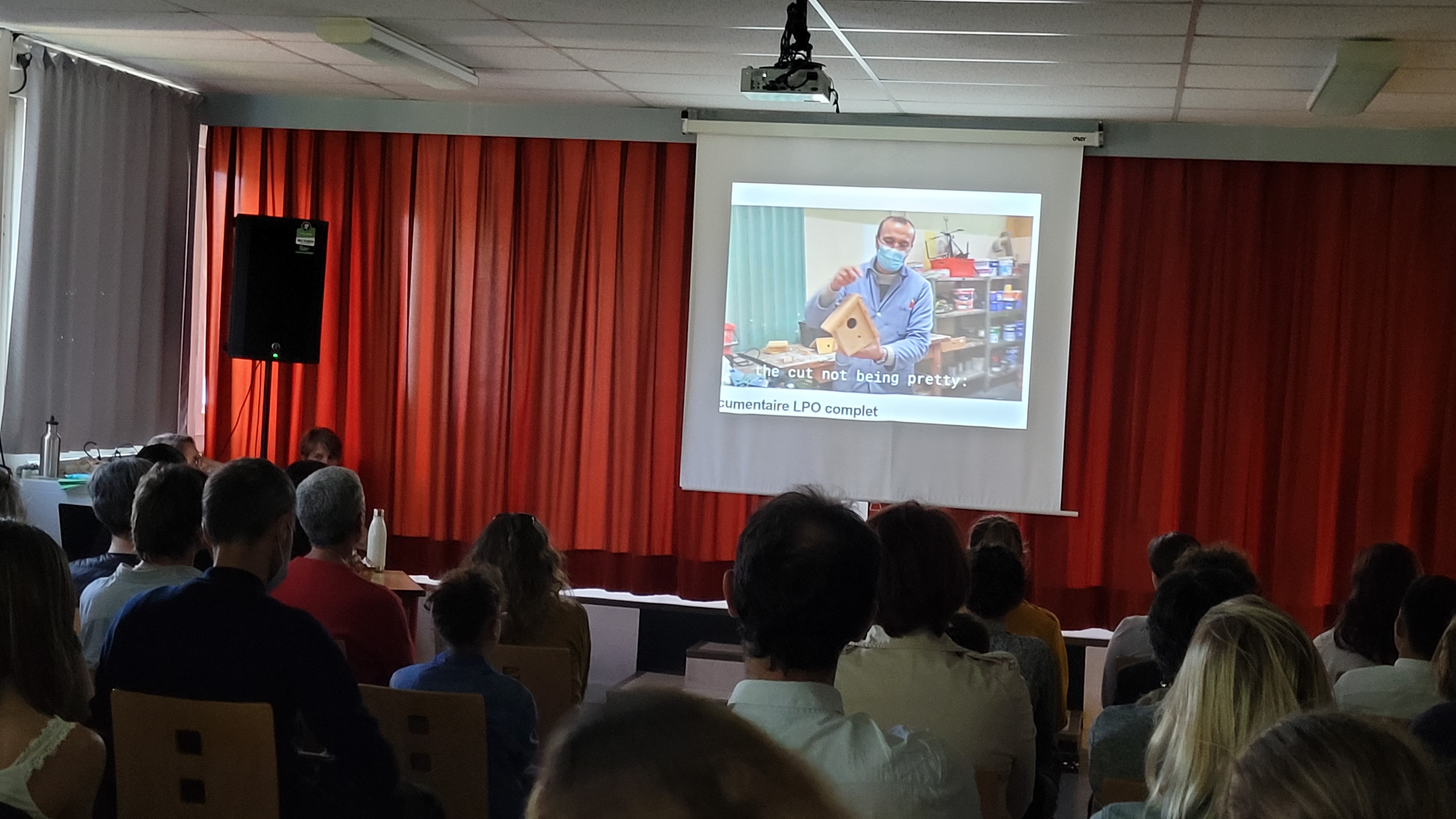 Projection du clip sous les yeux des élèves et de Maël de Calan le président du Conseil Départemental |