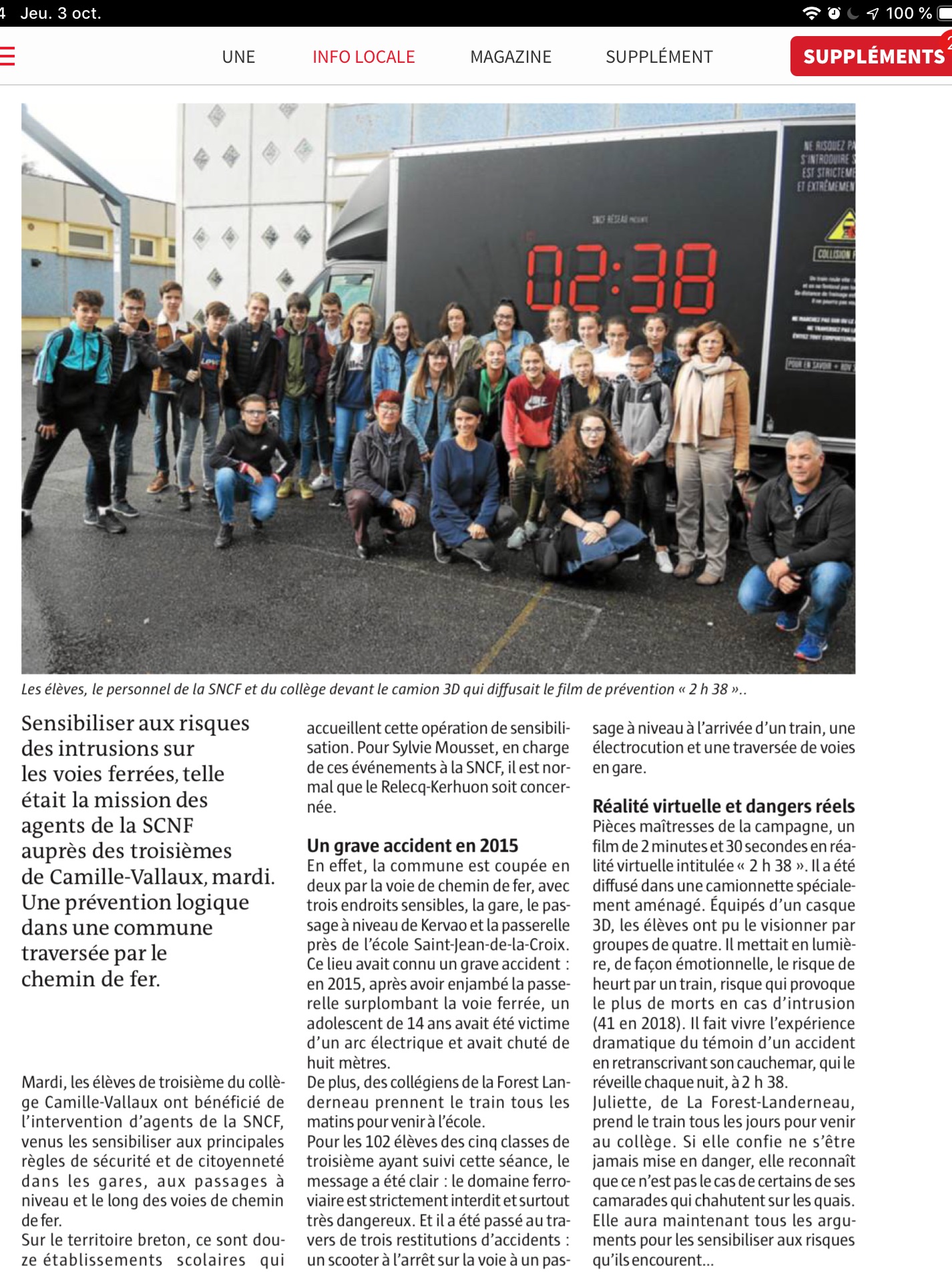 Opération 2 h 38 dans Le Télégramme et Ouest-France
