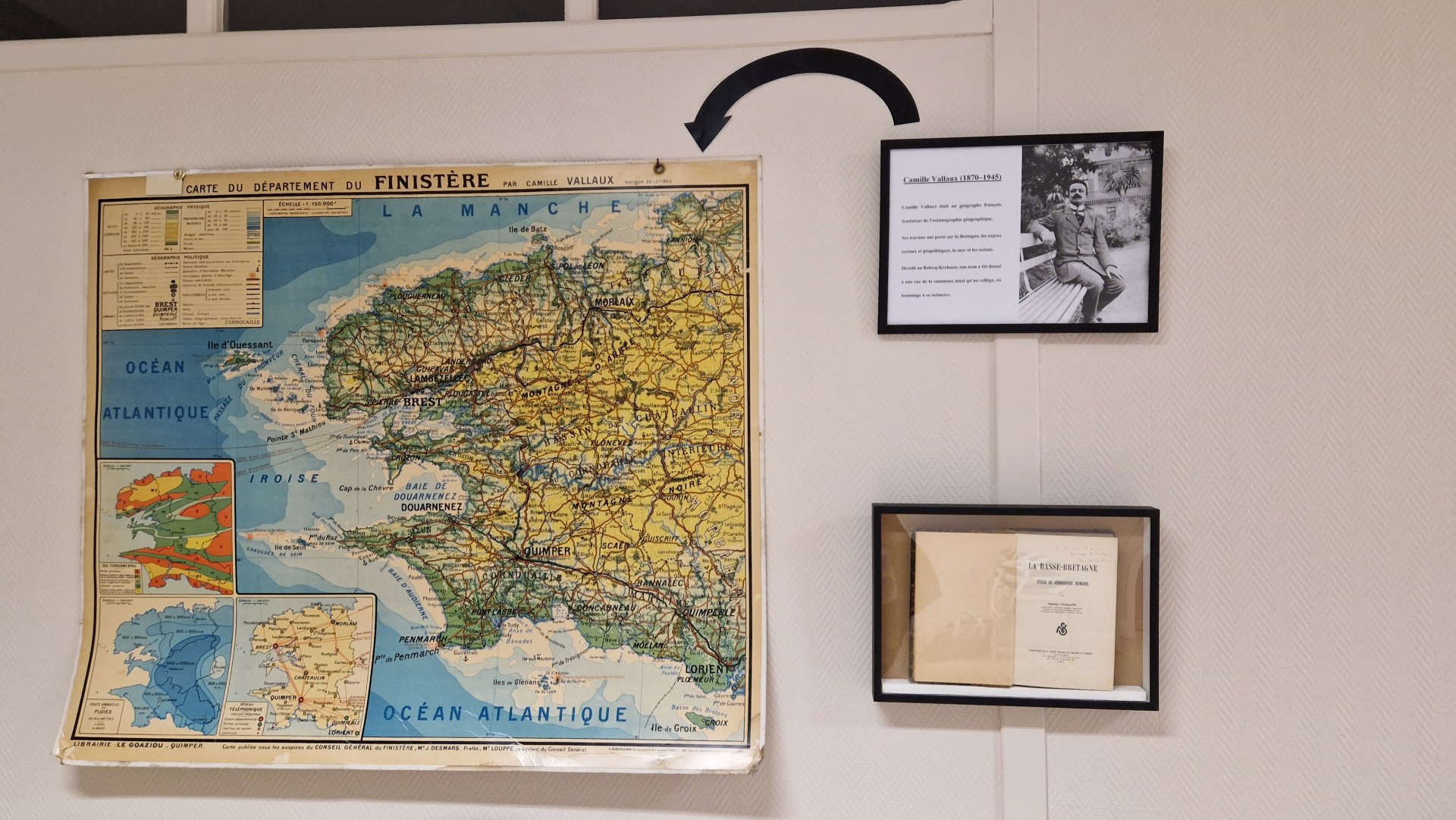 Vous pourrez l’admirer dans le couloir de l’administration, aux côtés d’une carte de la Bretagne également réalisée par Camille Vallaux !